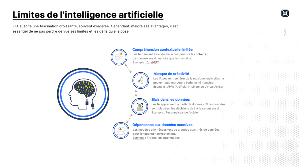 Dans une optique de développement des affaires, nous avons monté un webinaire sur l’IA afin de le diffuser auprès de partenaires et prospects. Le but était de leur présenter ce que l’IA impliquait dans une entreprise et comment prendre les bonnes mesures pour l’intégrer dans la leur. Ce projet de grande envergure impliquait la construction du storytelling, la recherche d’informations et de statistiques, en plus de démontrer notre expertise dans le sujet.